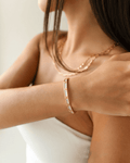 The Artemis Crystal Bangle embodies timeless elegance with a modern touch. Designed in 18K gold-plated brass, it features a seamless row of baguette-cut and round crystals that reflect light with every movement. This bracelet is the perfect balance of sophistication and boldness, making it ideal for both everyday wear and evening occasions.