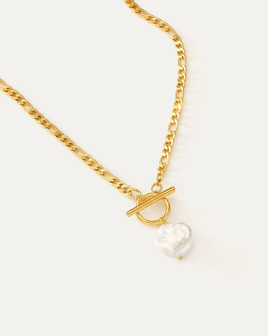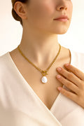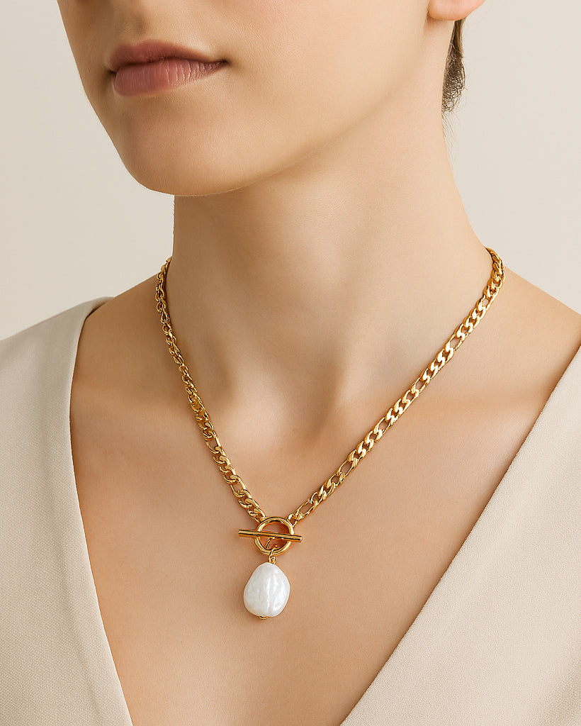 Elegant chain link necklace featuring a baroque freshwater pearl pendant, crafted from stainless steel with 18K gold or silver plating for a chic, vintage look.