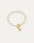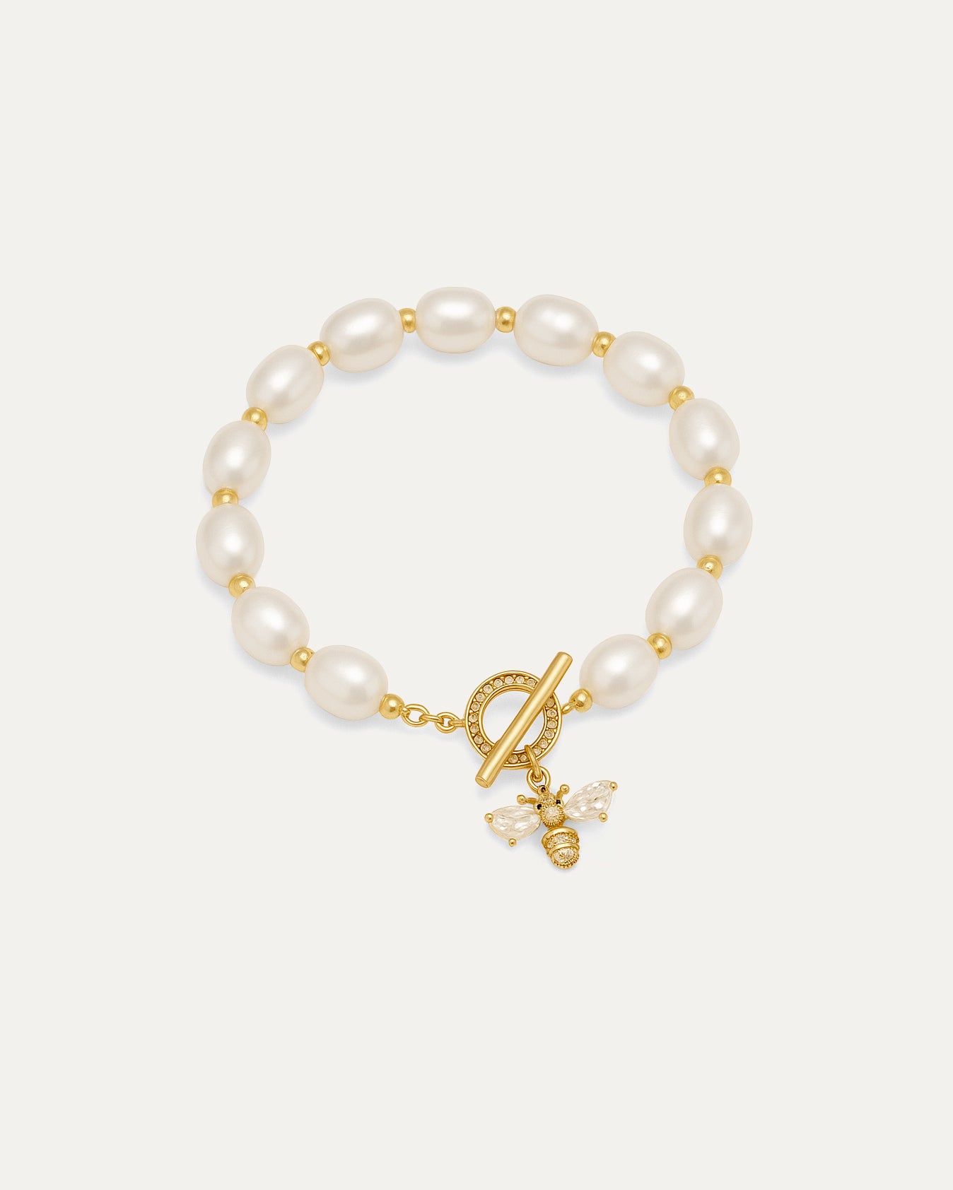 Elevate your jewelry collection with this luxurious beaded bracelet, featuring a zircon bee and freshwater pearls. Crafted from brass and plated with 18K gold, its geometric design is perfect for special occasions and makes a thoughtful gift for any woman.
