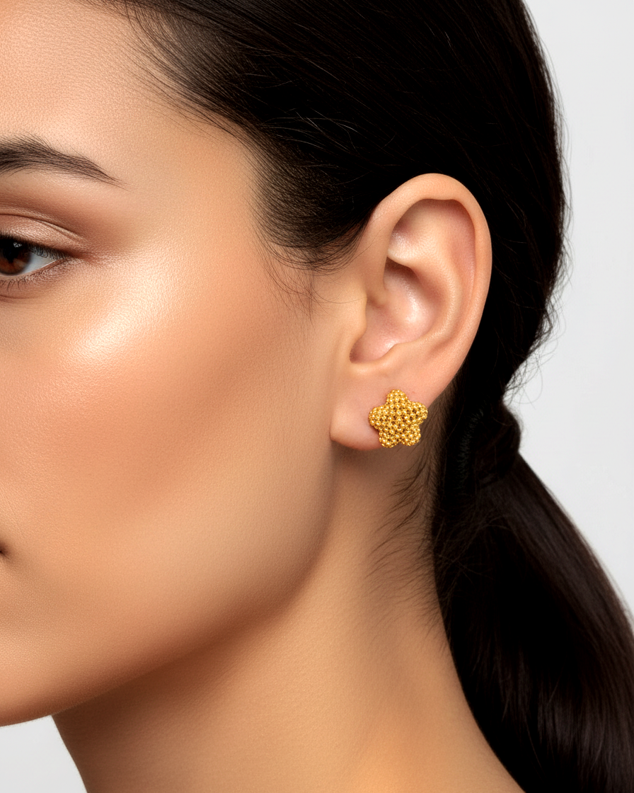 Discover these enchanting Bubble Flower Studs: where whimsy meets elegance in perfect harmony. With their unique honeycomb-inspired design crafted from delicate golden spheres, these playful yet sophisticated studs add instant charm to any look while remaining delightfully lightweight and comfortable.