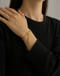 Elegant thin Cuban chain bracelet crafted from high-quality stainless steel and plated with 18K gold for a luxurious finish.